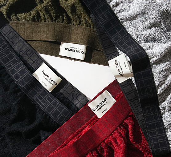 HOLIDAY TRUNKS original high quality double sided pile made by carefully knitting with only a few pile knitting machines in the world. Our original double sided pile is light and soft, and you can wear it comfortably all year round. I think we can deliver the comfortableness that we have never experienced before.